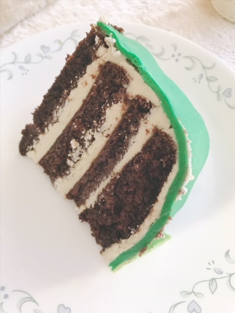 For my version, I baked a chocolate cake with Guinness in it, topped it with chocolate ganache made with Jameson, and then frosted it with frosting with Irish cream in it.