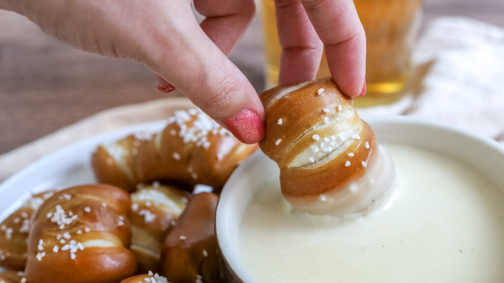 Eating beer cheese with warm pretzels is absolutely my favorite appetizer. Which is why I was inspired to start making my own beer cheese. It is the perfect cheesy appetizer. This white cheddar beer cheese is creamy, cheesy, and so, so good. You can use it as a dip for pretzels, chips, veggies, or anything else you want to dip in it. You could even use it as a sauce on pizza dough. This recipe is great because its so easy, the whole recipe is done in 15 minutes, and only really requires a saucepan and a whisk!