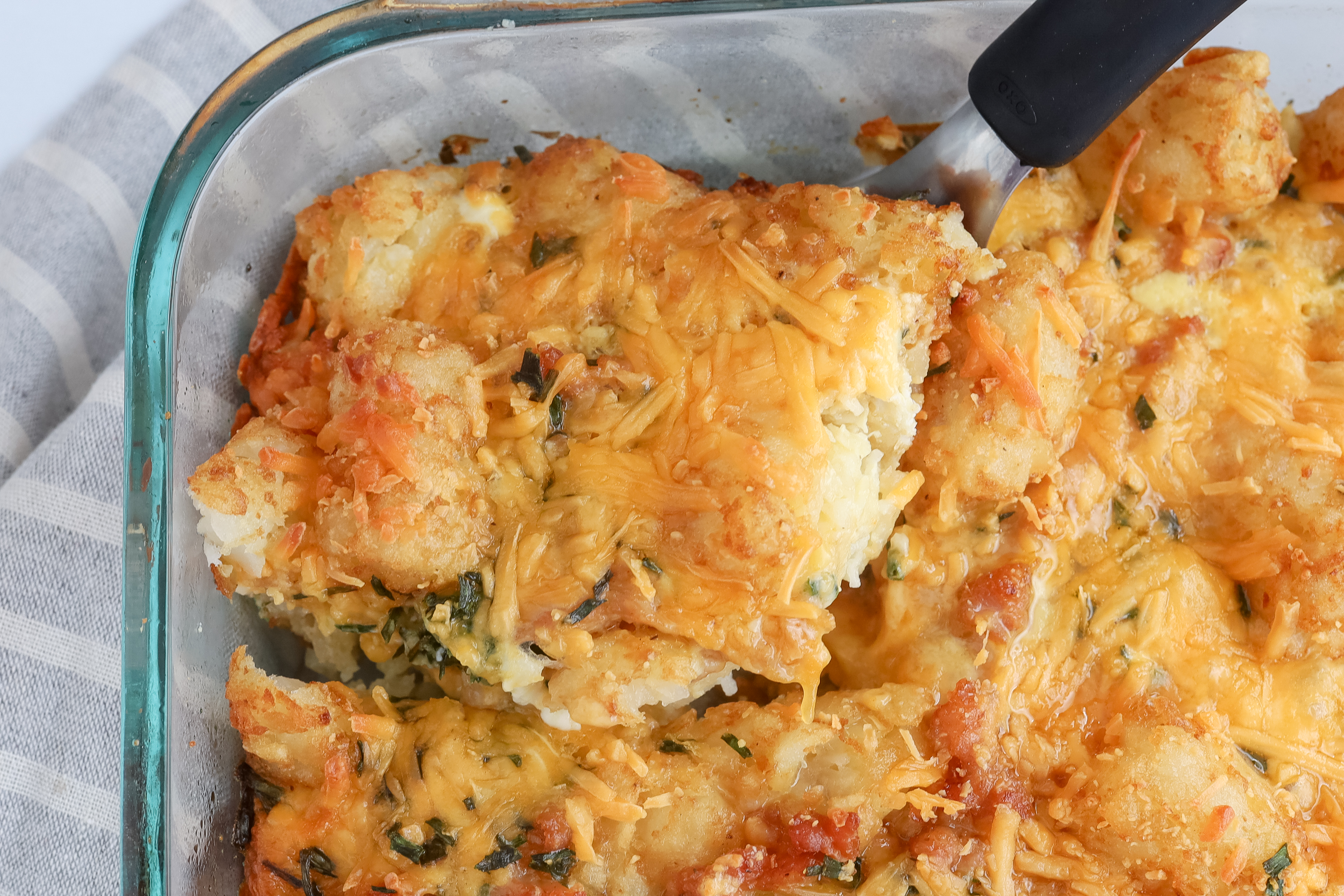 Yes, you can definitely make this breakfast tater tot casserole ahead of time. In fact, preparing it the night before and refrigerating it overnight is a common approach to save time in the morning. By making breakfast tater tot casserole ahead of time, you can streamline your morning routine and still enjoy a delicious and satisfying breakfast with minimal effort. It's a great option for busy weekdays or when you have guests over for brunch. You can also bake it ahead of time and keep it in the fridge for up to 3 days before reheating it and serving it, which is a great thing to do with leftovers.