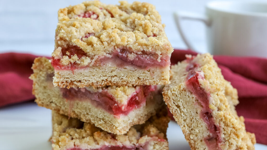 • Cooling Completely Before Cutting: After baking, allow the strawberry rhubarb bars to cool completely in the pan before cutting into squares. This ensures that the bars set properly and hold their shape when served, preventing any crumbling or oozing of the filling.