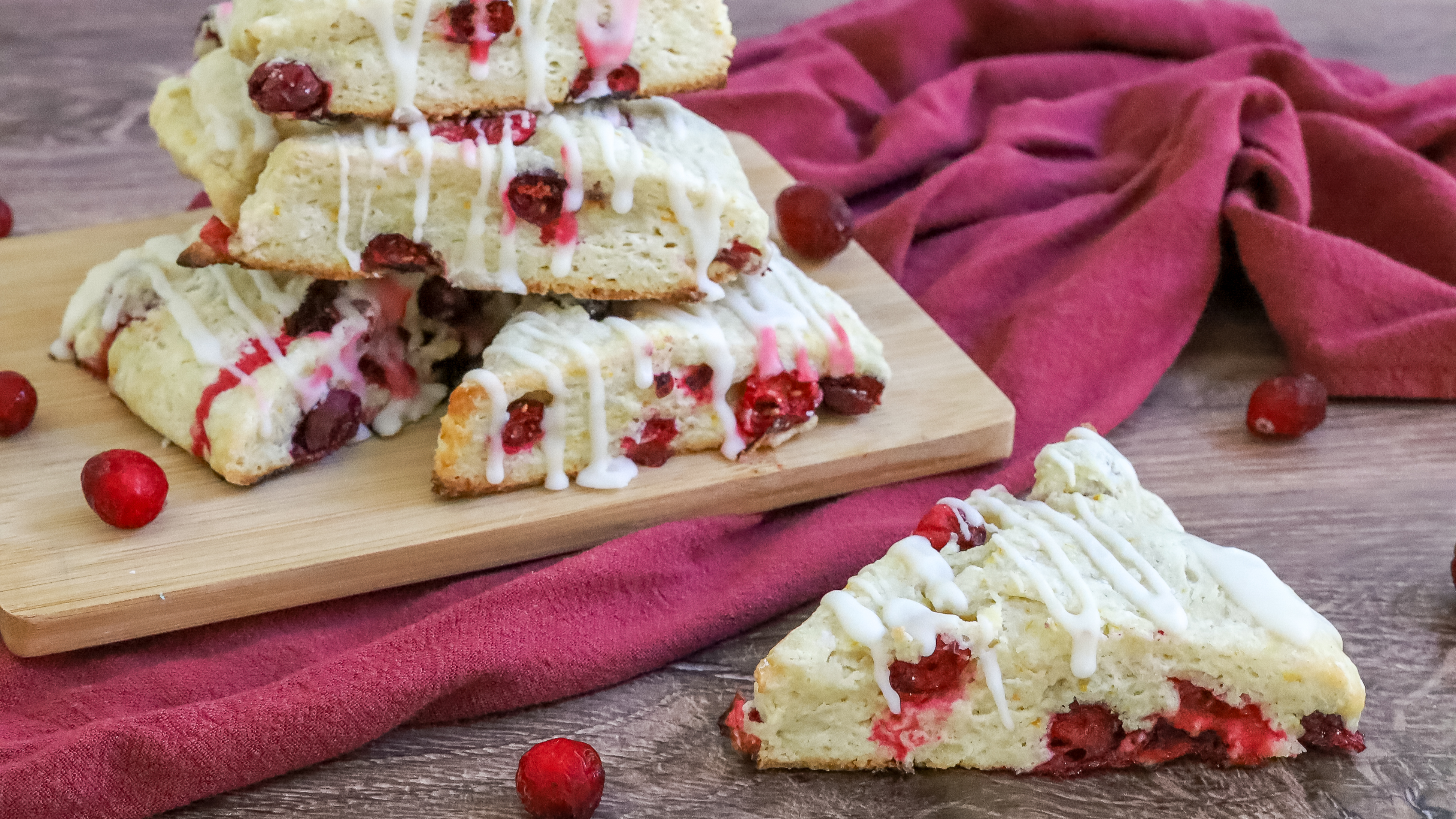 The perfect blend of tart cranberries and bright citrus, these fluffy, buttery cranberry orange scones are easy to make and perfect for breakfast or a cozy afternoon treat.